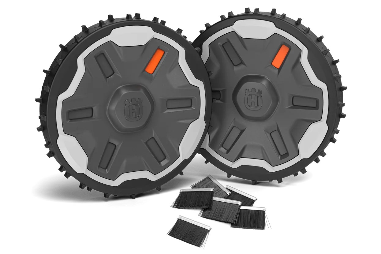 Sada se skládá z těžkých zadních kol a kartáčků na kola pro dokonalou trakci na svažitých travnatých plochách.